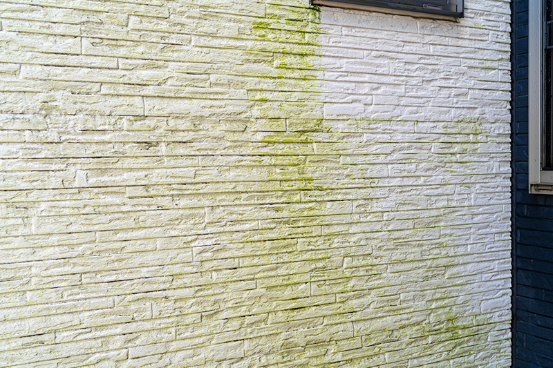 年に1回程度、外壁を高圧洗浄することで表面の苔・カビの胞子を洗い流すことができます。専用洗剤と併用することで、除去効果が高まります。