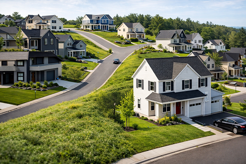住宅の外壁塗装の劣化は、築年数や塗料の種類だけで決まるわけではありません。実は、家が建っている「土地の地形」も大きく影響します。特に高低差のある土地では、風の流れや雨水の当たり方、湿気の滞留などが外壁の状態に影響を与えることがあります。
